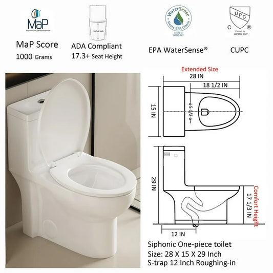 Largrcare Modern One Piece Toilet with Soft Close Seat , Elongated Toilet with Comfort Seat Height, ADA Chair Height 17.32", Dual Flush 1.1/1.6 GPF & MAP 1000g, Standard White Toilet Bowl